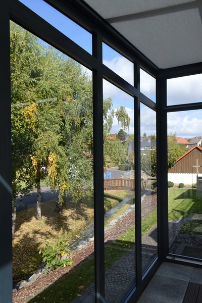 - Unterglas-Markise für flexiblen Sonnenschutz an windigen Tagen