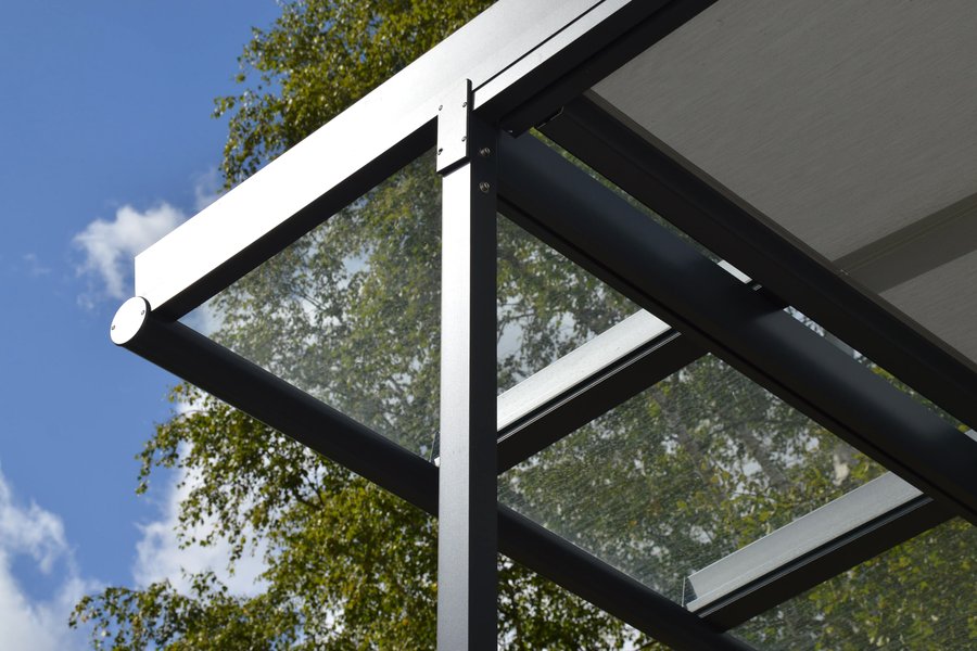 - Einseitig angebrachte Aluminium-Seitenteile schützen vor Wind und Regen