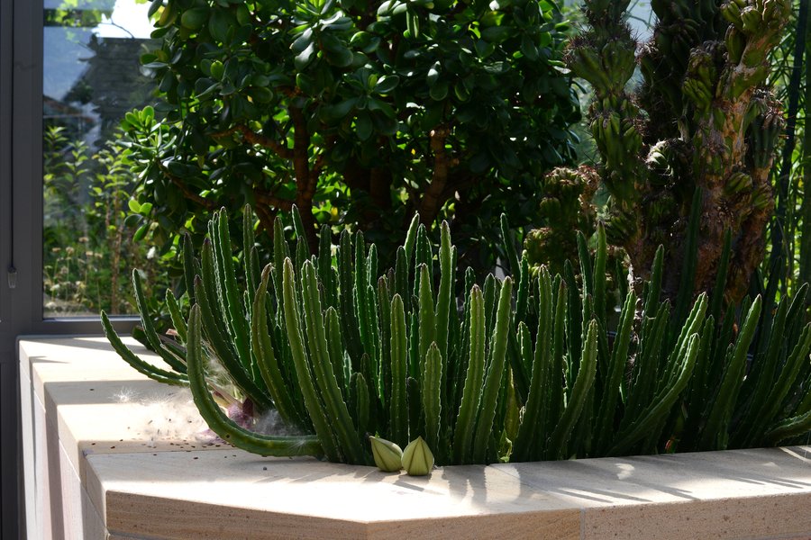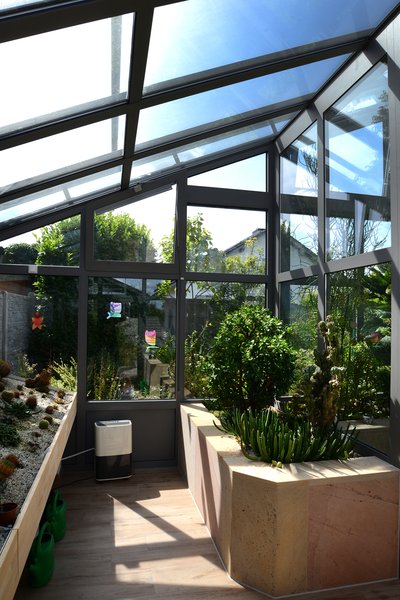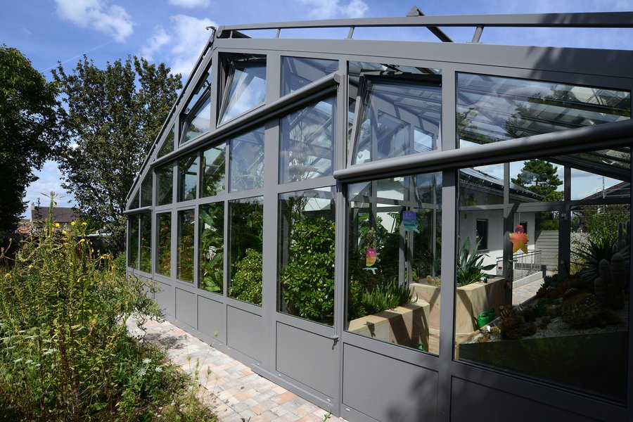 Dieser geräumige Wintergarten dient unter anderem als Gewächshaus für Kakteen und andere südländische Pflanzen.