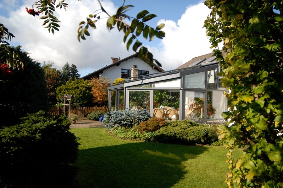 Der Aluminium-Wintergarten wird im Frühjahr zu einen einladenden Ort, an dem man sich von den ersten Sonnenstrahlen verwöhnen lassen kann. Im Winter hingegen verspricht er mit einem behaglichen Ofen eine gemütliche Atmosphäre. Diese vielseitige Nutzung macht den Raum zu einem ganzjährig beliebten Rückzugsort.