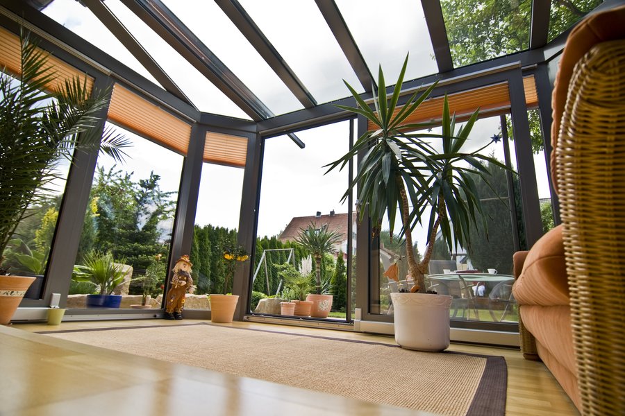 - Hochwertige Beschattungslösungen praktisch und ästhetisch in Gesamtdesign des Wintergartens eingefügt.