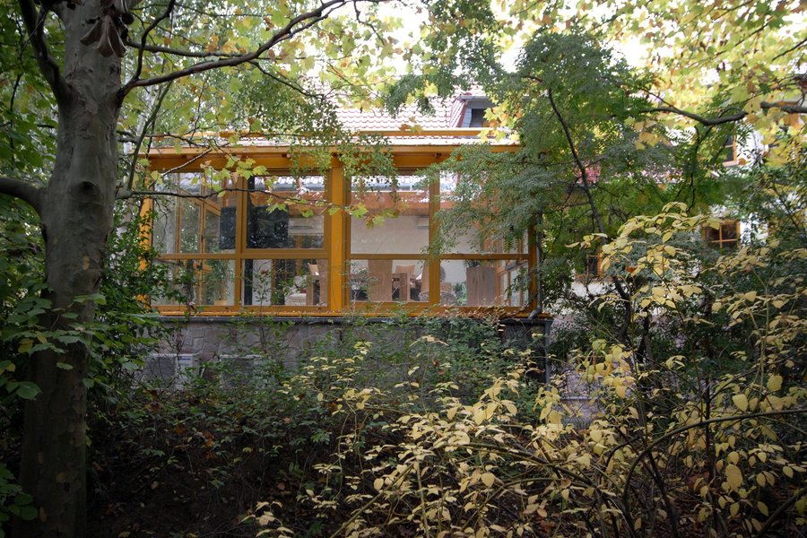 - Arbeitszimmer: Im Wintergarten kann man ungestört arbeiten und die frische Luft genießen.
